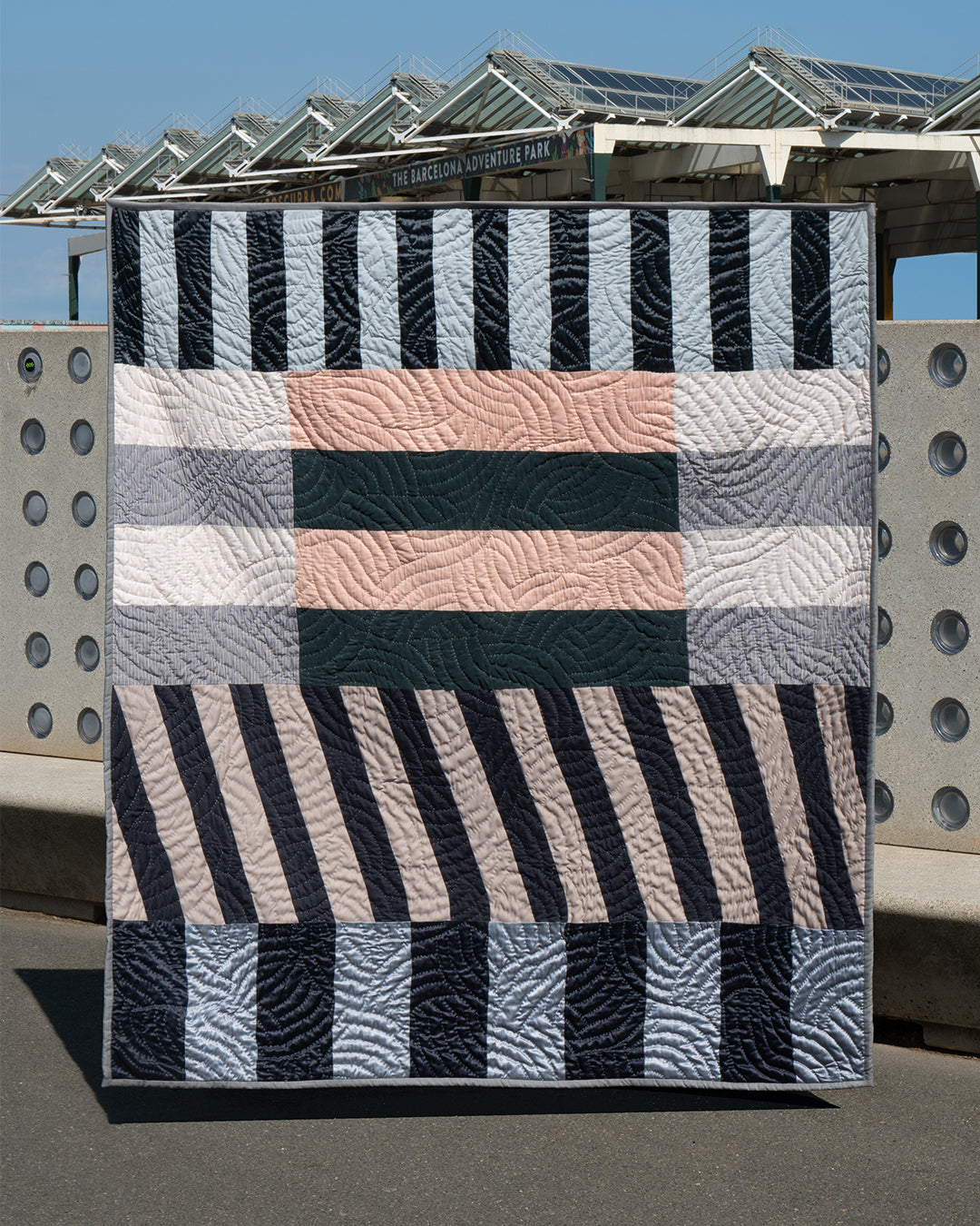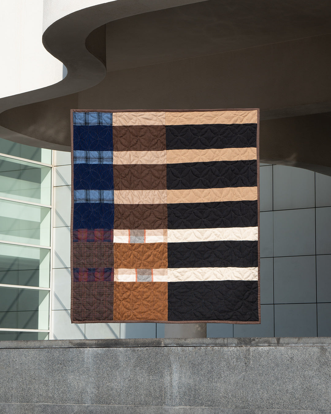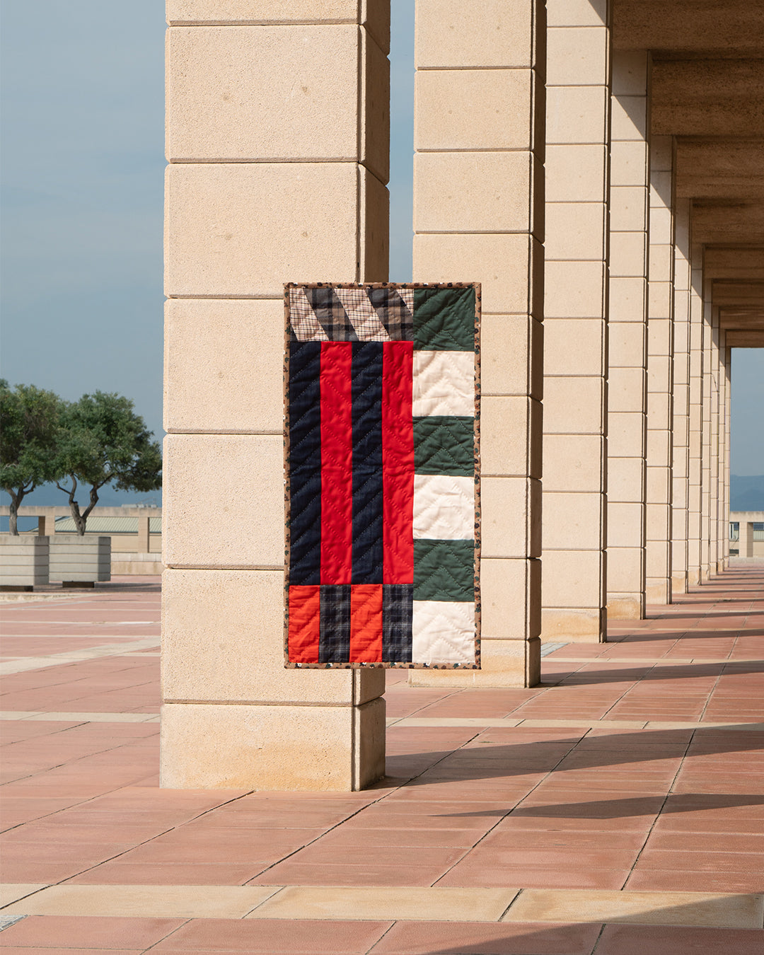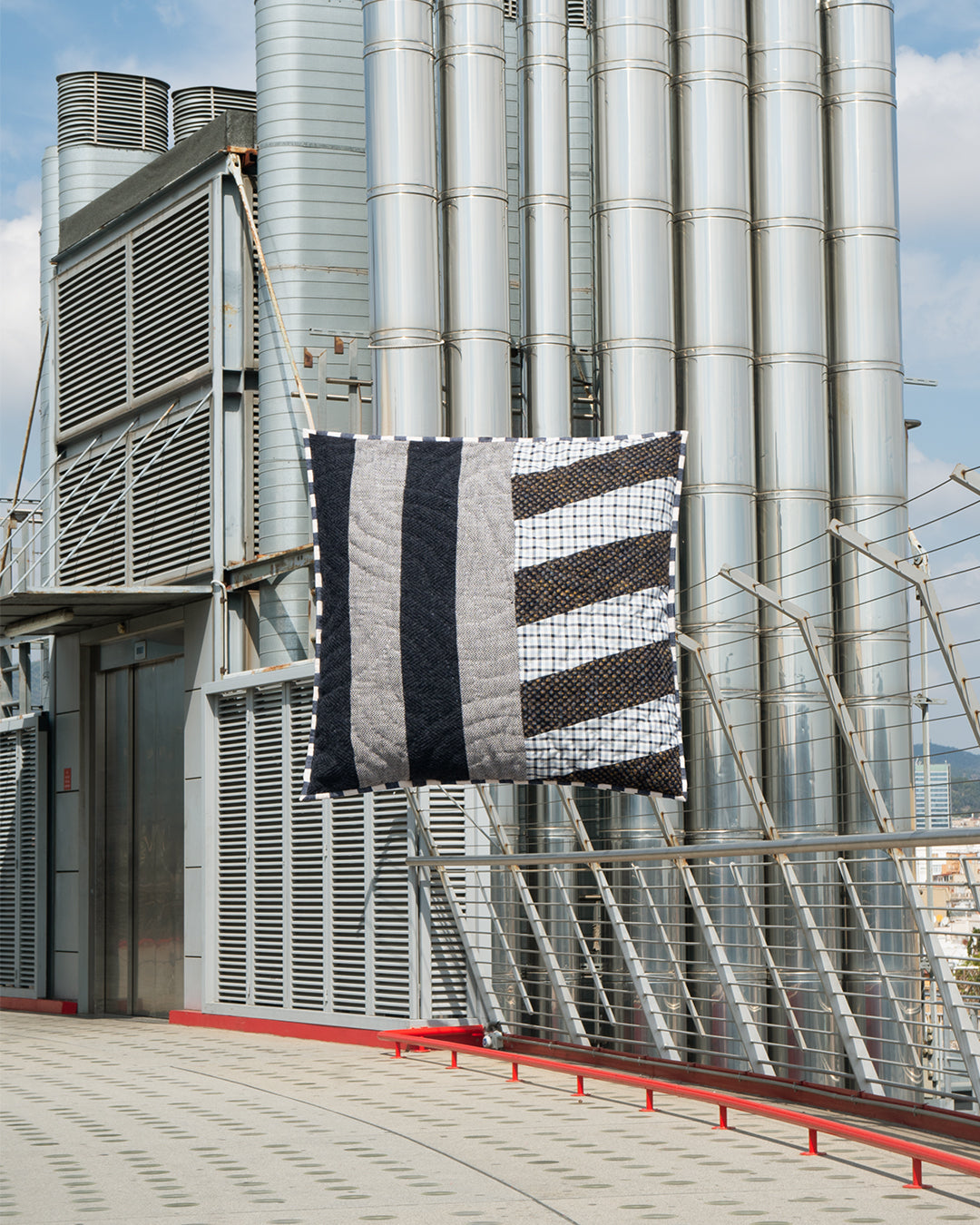 For Round 24 of the A.P.C. quilts, Jessica Ogden was inspired by the paintings of artist Sean Scully. "After the complex concept of Series 23, his minimalist works spoke to me, with their sort of subtle, rhythmic breathing and unexpected colour choices," she says. The result is a series of quilts with a graphic design where colour upsets the regularity of simple geometric shapes.