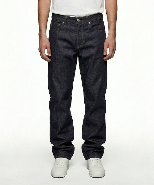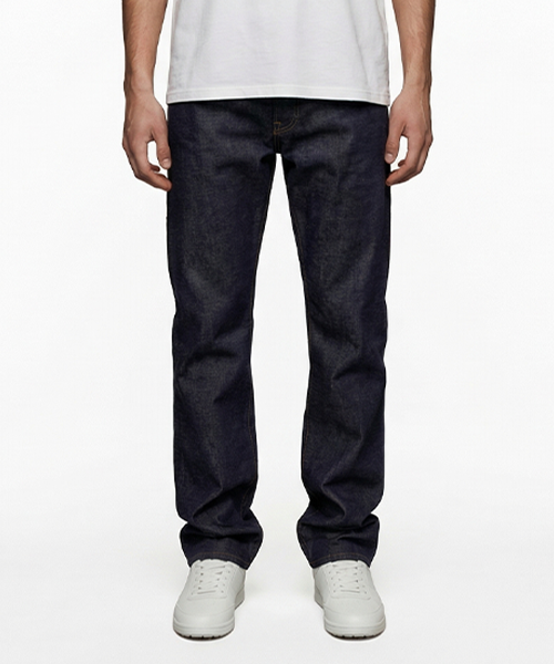 Straight unisex jeans in indigo selvedge denim.