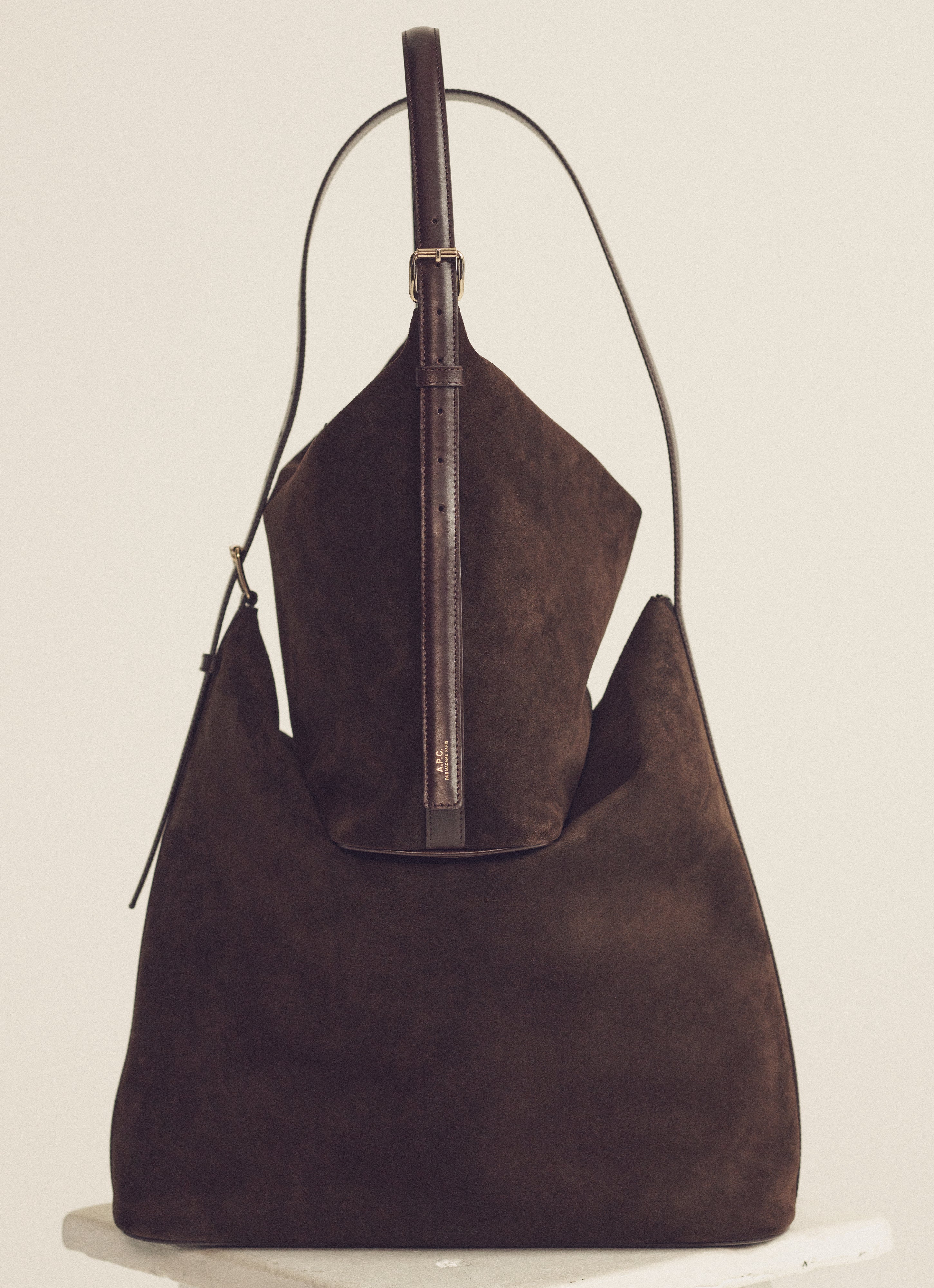 Square nut brown bag with large flap, inspired by the Virginie bag.