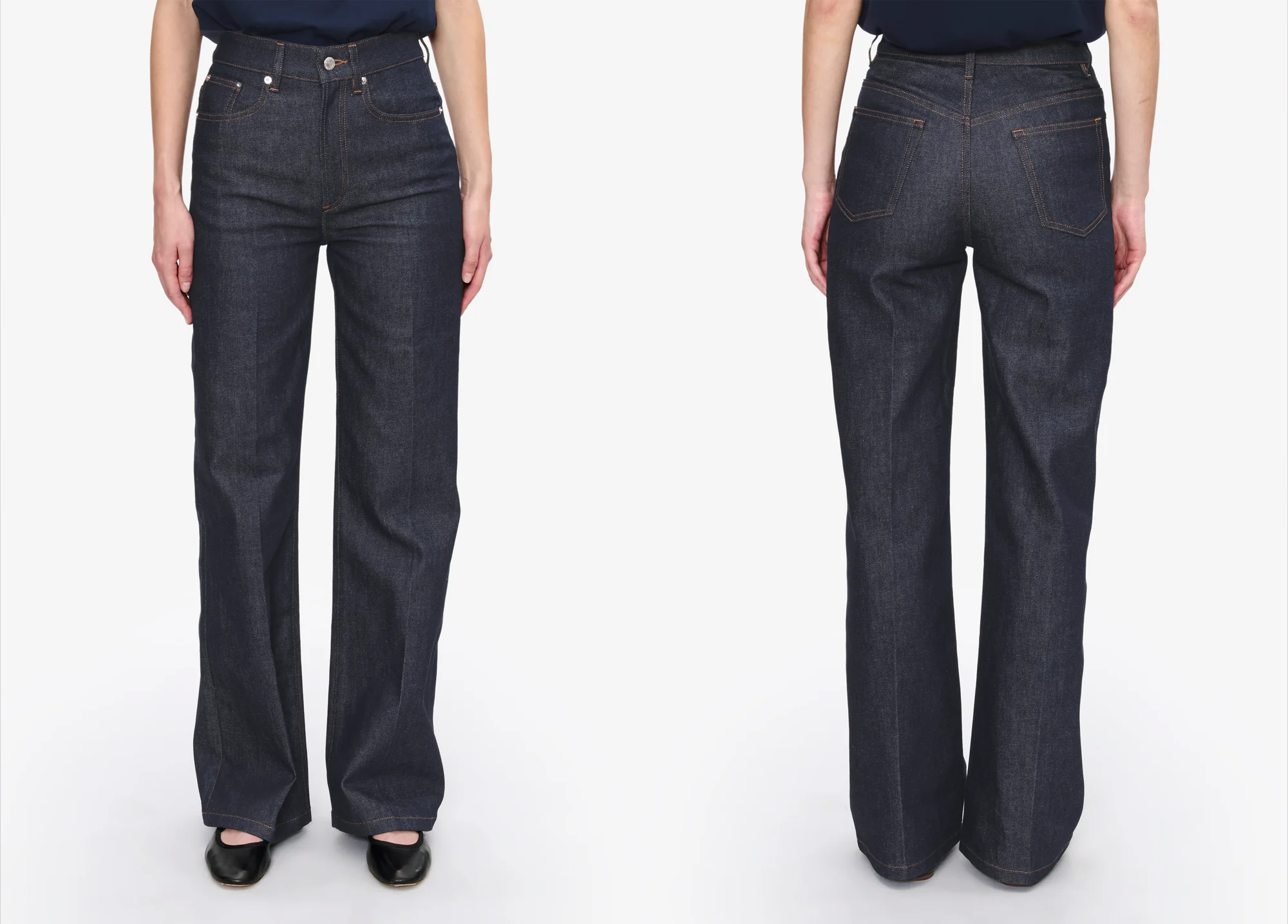 High-rise with marine-inspired topstitched pockets, the Seaside has a confident seventies spirit. Its leg lengthens the silhouette even in flat shoes, making it an easy choice across a wide range of occasions.
